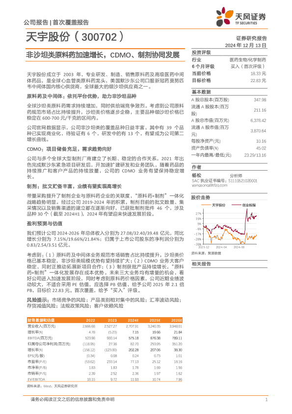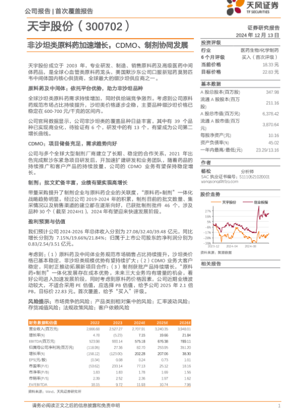 【天风证券】【20241213】非沙坦类原料药加速增长,CDMO、制剂协同发展-21页