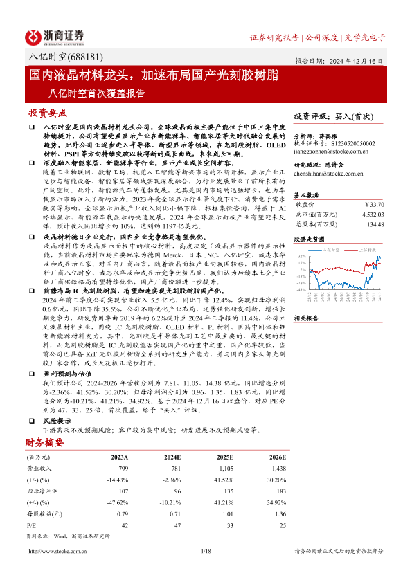 【浙商证券】【20241216】八亿时空首次覆盖报告:国内液晶材料龙头,加速布局国产光刻胶树脂-18页