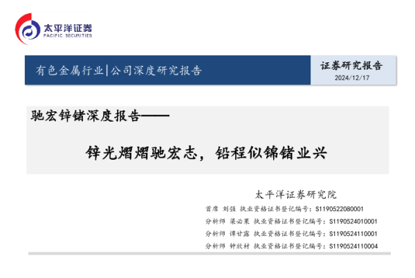 【太平洋证券】【20241217】驰宏锌锗深度报告:锌光熠熠驰宏志,铅程似锦锗业兴-31页