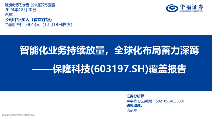 【华福证券】【20241220】保隆科技-603197.SH-覆盖报告:智能化业务持续放量,全球化布局蓄力深蹲-38页