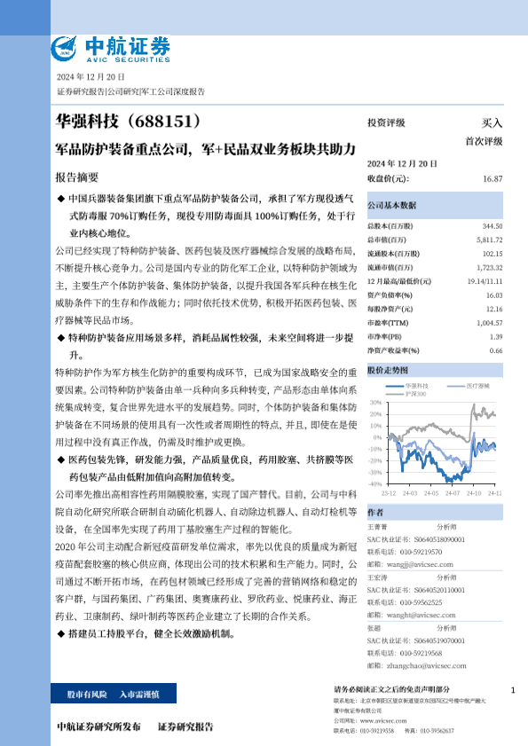 【中航证券】【20241220】华强科技 - 军品防护装备重点公司,军+民品双业务板块共助力-27页