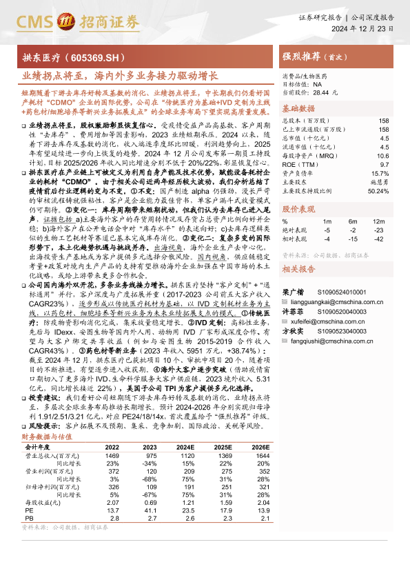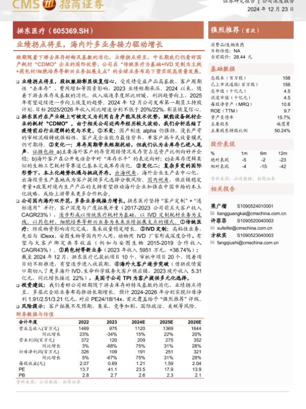 【海通证券】【20241223】拱东医疗-605369.SH-业绩拐点将至,海内外多业务接力驱动增长-28页