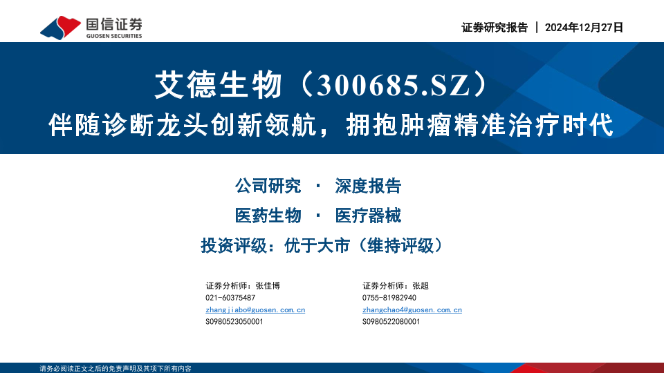【国信证券】【20241227】艾德生物-300685.SZ-伴随诊断龙头创新领航,拥抱肿瘤精准治疗时代-54页