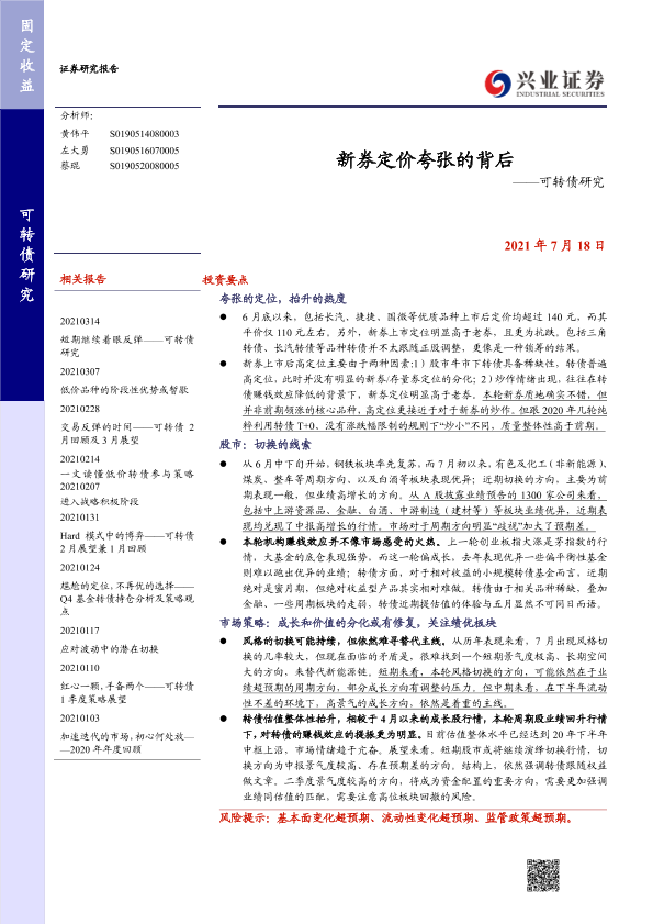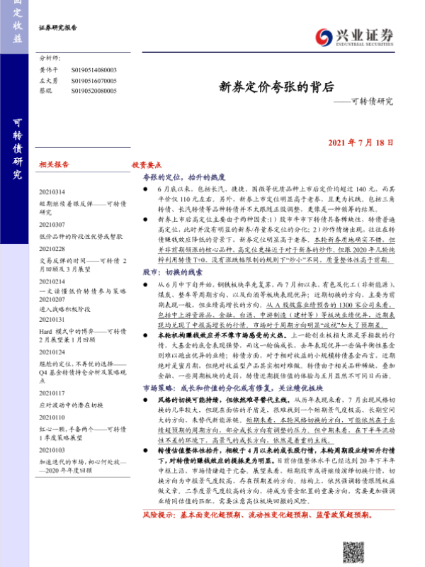 【兴业证券】【20210718】可转债研究:新券定价夸张的背后-24页
