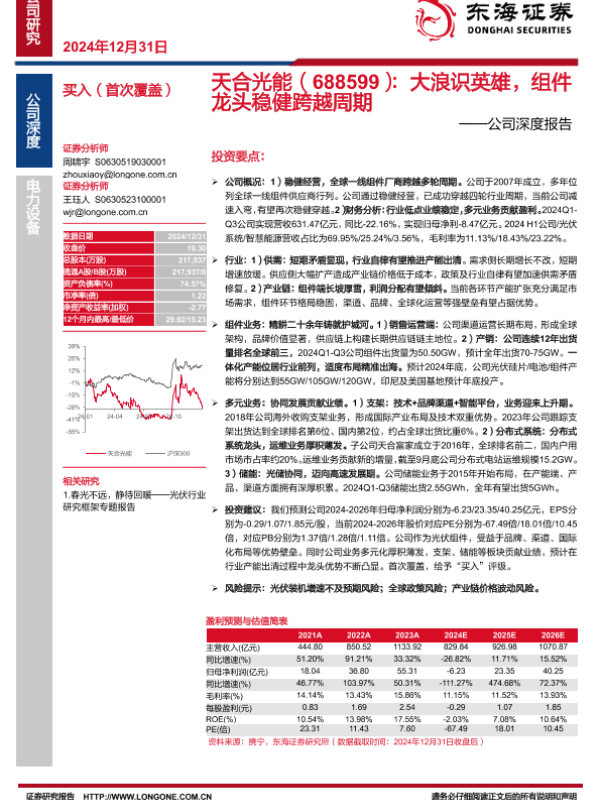 【东海证券】【20241231】天合光能(688599):大浪识英雄,组件龙头稳健跨越周期——公司深度报告-29页