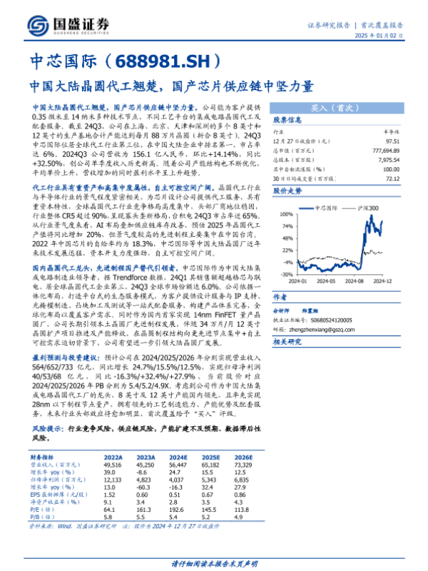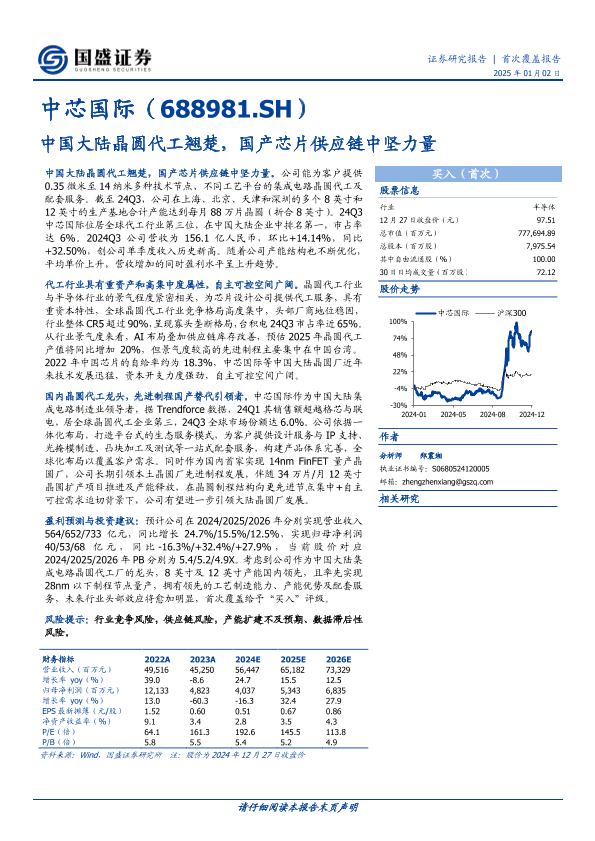 【国盛证券】【20250102】中国大陆晶圆代工翘楚,国产芯片供应链中坚力量-30页