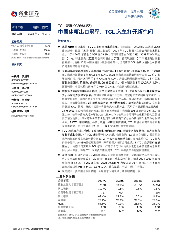 【兴业证券】【20250103】中国冰箱出口冠军,TCL入主打开新空间-20页
