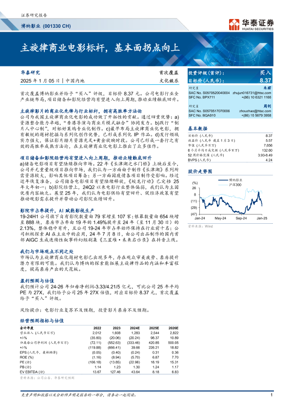 【华泰证券】【20250105】20250105-华泰证券-博纳影业-001330.SZ-主旋律商业电影标杆,基本面拐点向上-25页
