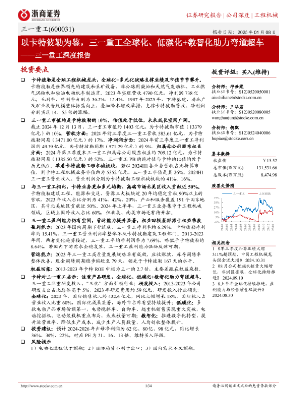 【浙商证券】【20250108】三一重工深度报告:以卡特彼勒为鉴,三一重工全球化、低碳化+数智化助力弯道超车-34页