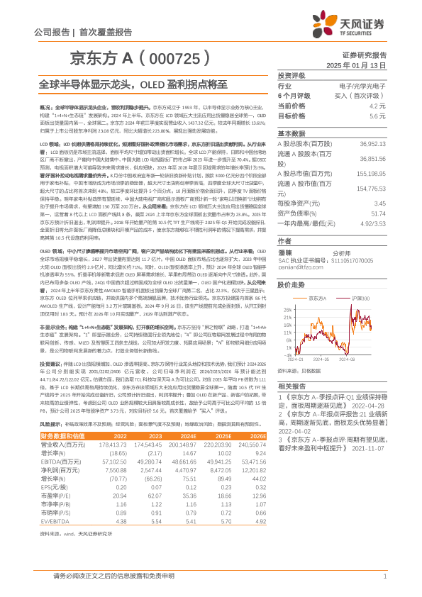 【天风证券】【20250113】京东方A-000725.SZ-全球半导体显示龙头,OLED盈利拐点将至-26页