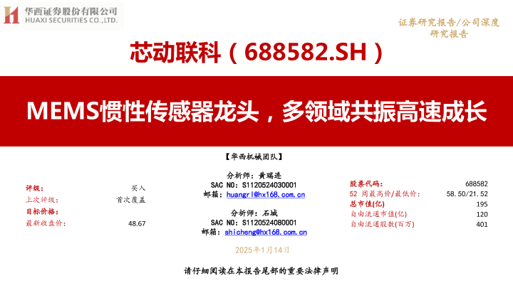【华西证券】【20250114】20250114-华西证券-芯动联科-688582.SH-MEMS惯性传感器龙头,多领域共振高速成长-41页