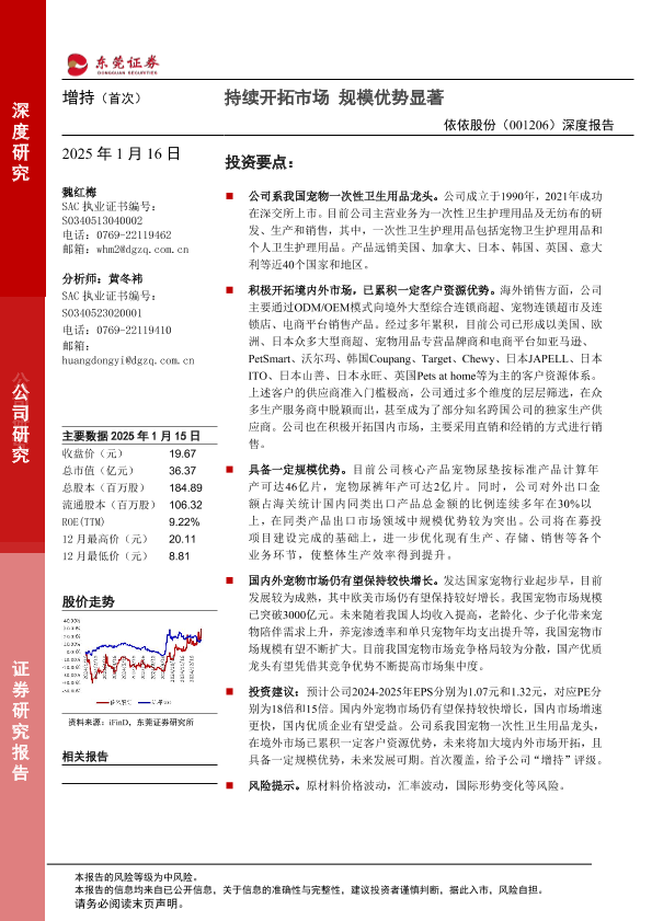 【东莞证券】【20250116】20250116-东莞证券-依依股份-001206.SZ-深度报告:持续开拓市场 规模优势显著-19页