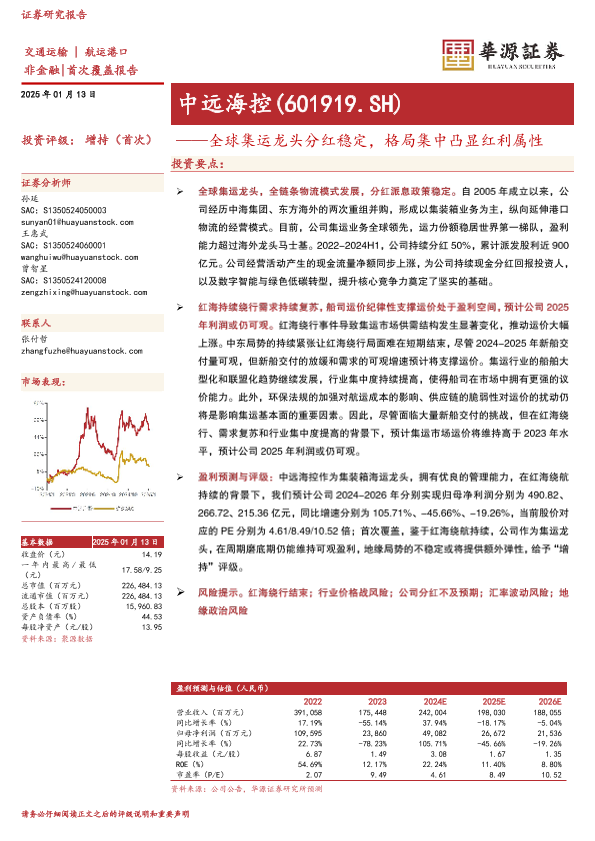 【华源证券】【20250113】中远海控-全球集运龙头分红稳定,格局集中凸显红利属性-25页