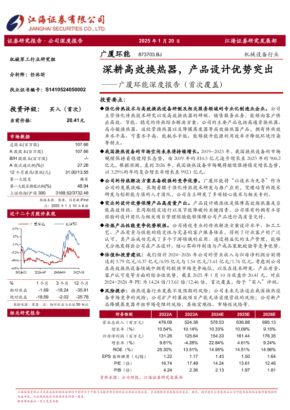 【江海证券】【20250120】广厦环能深度报告(首次覆盖):深耕高效换热器,产品设计优势突出-30页