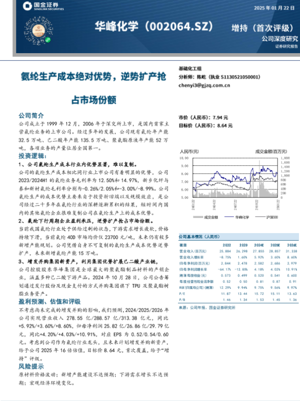 【国金证券】【20250122】华峰化学-002064.SZ-氨纶生产成本绝对优势,逆势扩产抢占市场份额-20页