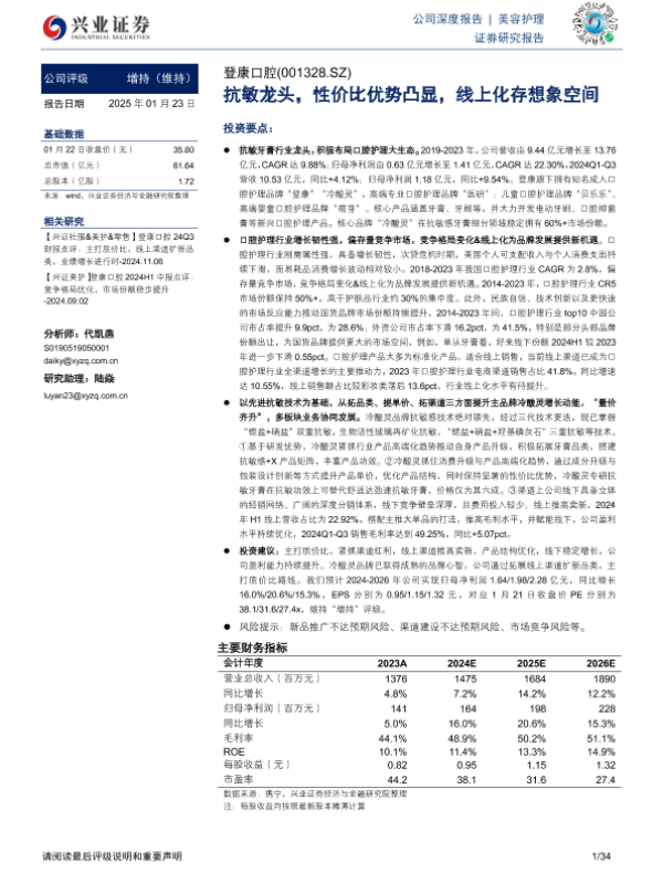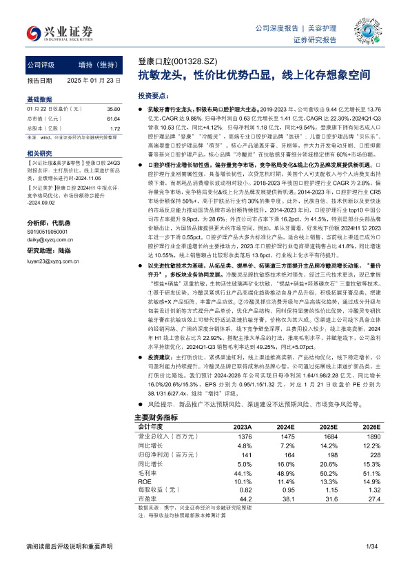 【兴业证券】【20250123】登康口腔-001328.SZ-抗敏龙头,性价比优势凸显,线上化存想象空间-34页