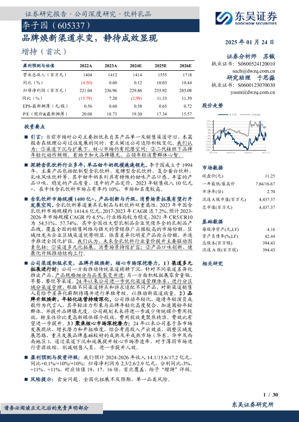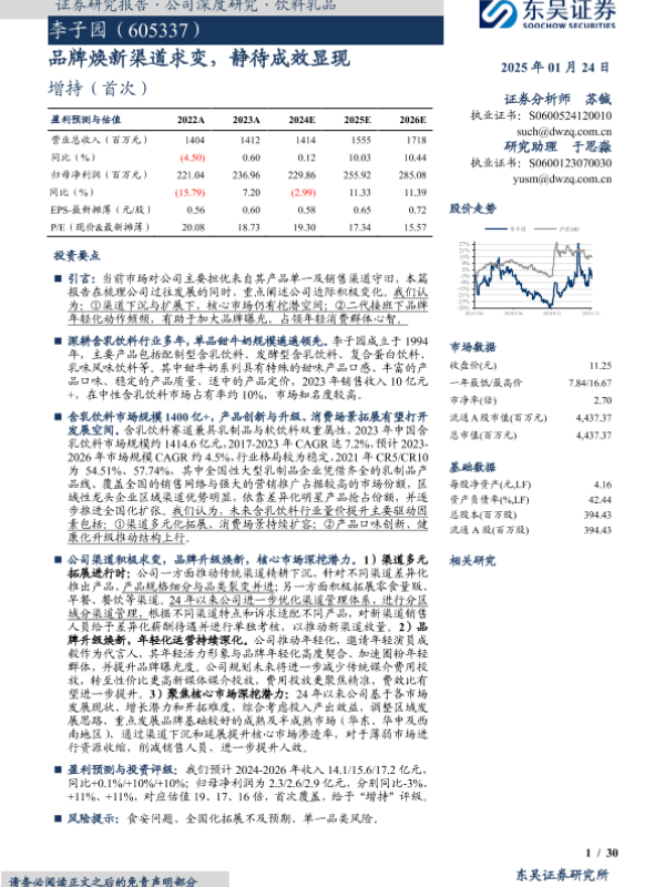 【东吴证券】【20250124】李子园-605337.SH-品牌焕新渠道求变,静待成效显现-30页