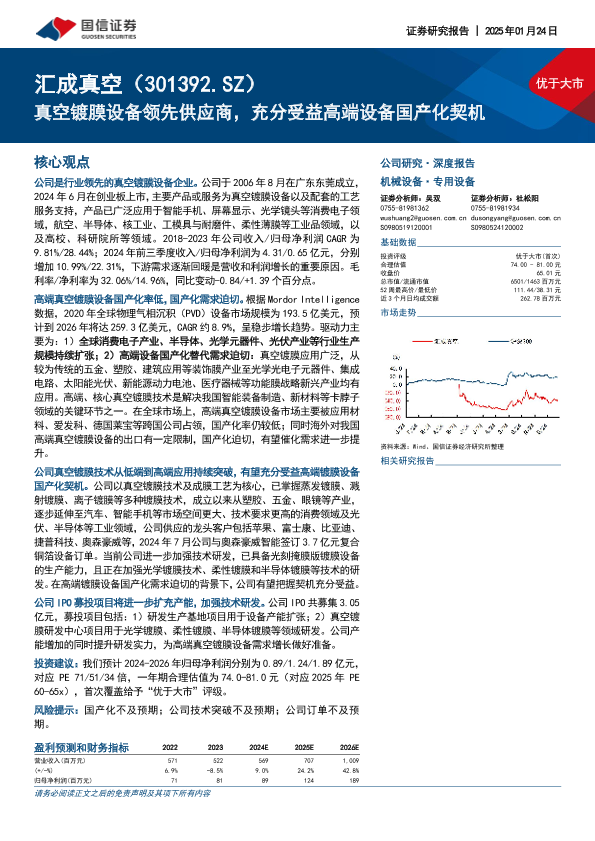 【国信证券】【20250124】汇成真空-301392.SZ-真空镀膜设备领先供应商,充分受益高端设备国产化契机-20页