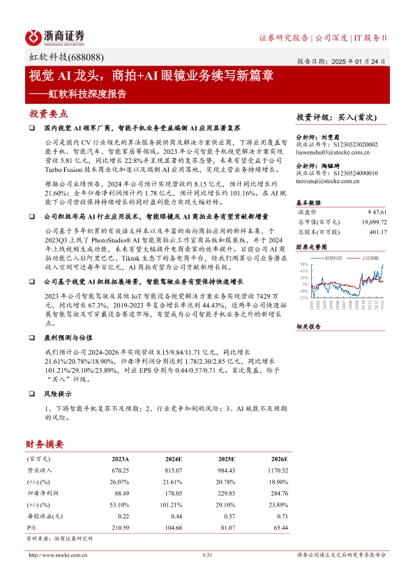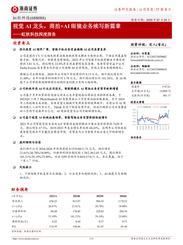 【浙商证券】【20250124】虹软科技深度报告:视觉AI龙头,商拍+AI眼镜业务续写新篇章-31页