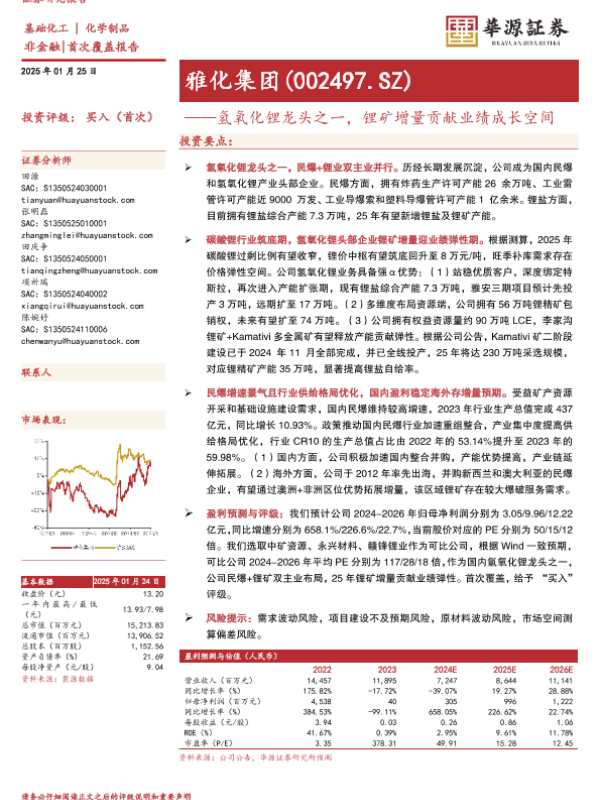 【华源证券】【20250125】雅化集团-002497.SZ-氢氧化锂龙头之一,锂矿增量贡献业绩成长空间-21页