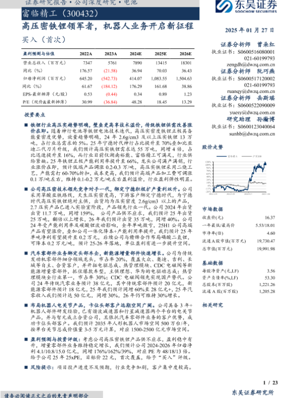 【东吴证券】【20250127】富临精工:高压密铁锂领军者,机器人业务开启新征程-23页