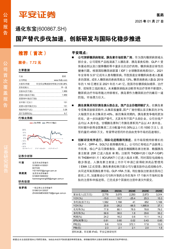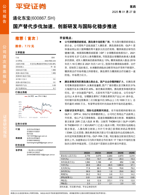 【平安证券】【20250127】通化东宝-国产替代步伐加速,创新研发与国际化稳步推进-20页