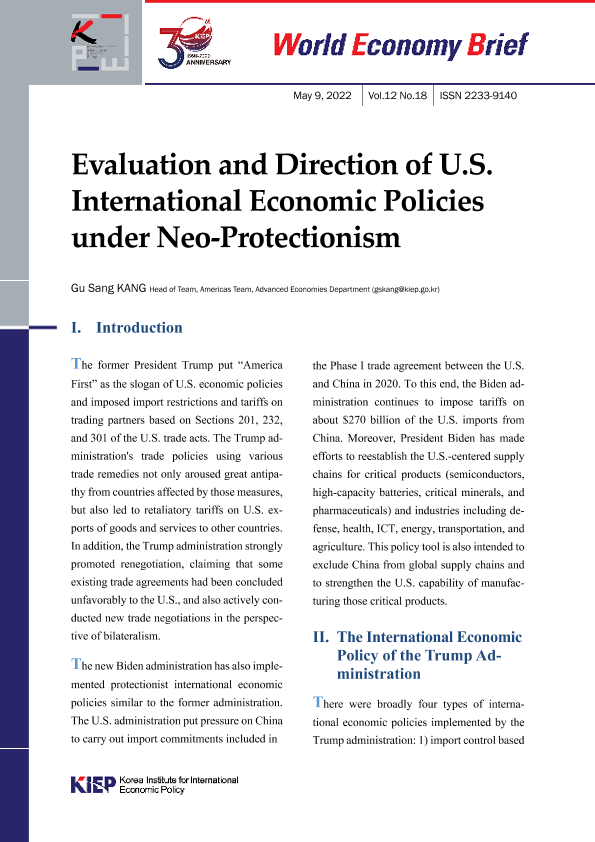 【韩国国际经济政策研究所】【20220509】新保护主义下美国国际经济政策的评价与导向-12页