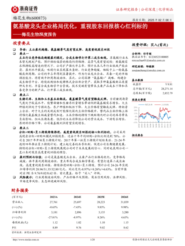 【浙商证券】【20250206】梅花生物深度报告:氨基酸龙头企业格局优化,重视股东回报核心红利标的-20页