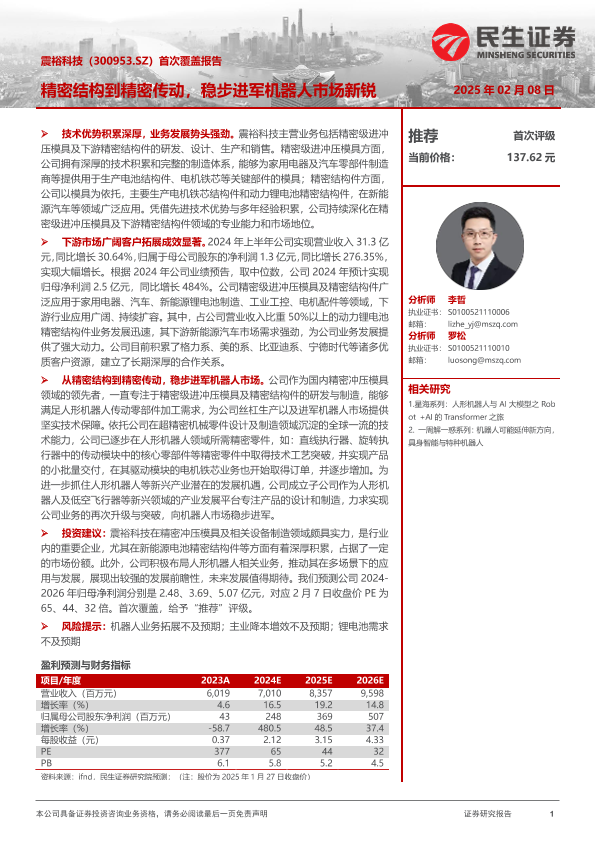 【民生证券】【20250208】震裕科技-300953.SZ-首次覆盖报告:精密结构到精密传动,稳步进军机器人市场新锐-37页