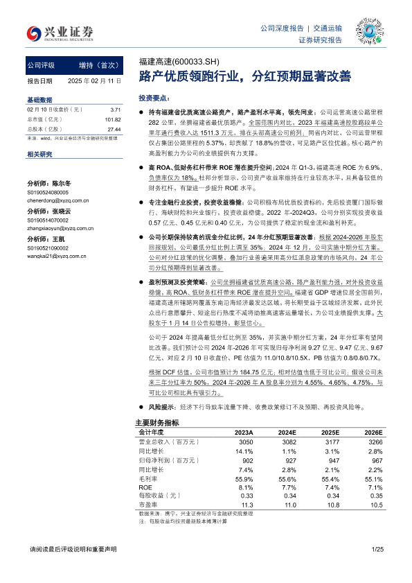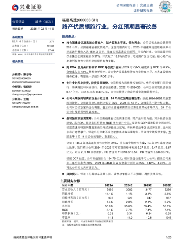 【兴业证券】【20250211】福建高速-600033.SH-路产优质领跑行业,分红预期显著改善-25页