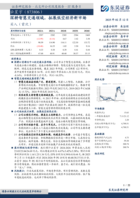 IT服务 低空经济 北交所 智慧交通 盈利预测