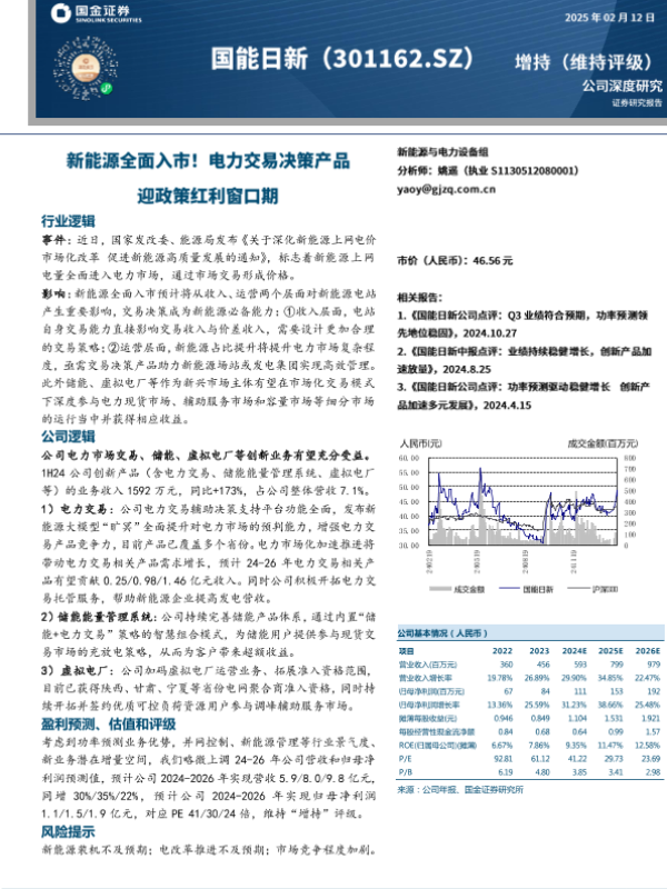 【国金证券】【20250212】国能日新-新能源全面入市!电力交易决策产品迎政策红利窗口期-15页