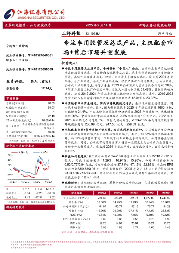 【江海证券】【20250214】专注车用胶管及总成产品,主机配套市场+售后市场并重发展-31页