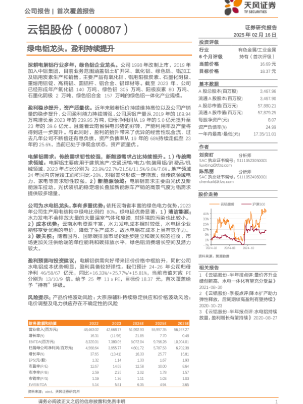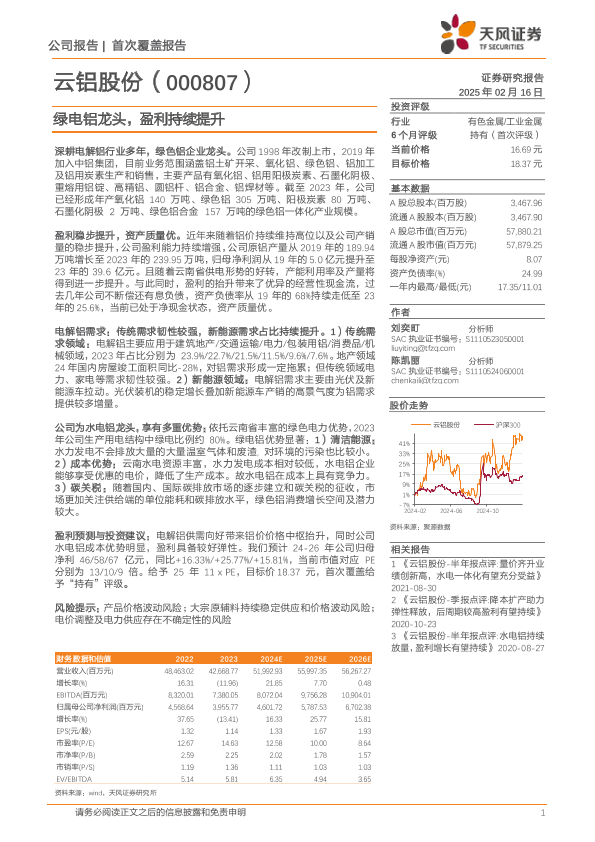 【天风证券】【20250216】云铝股份-000807.SZ-绿电铝龙头,盈利持续提升-19页