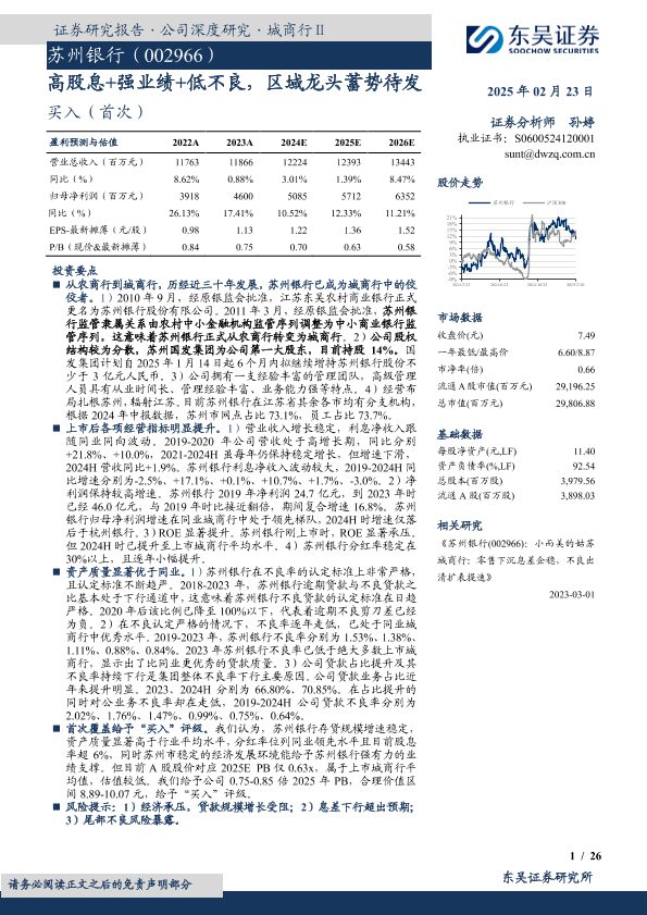 【东吴证券】【20250223】苏州银行(002966):高股息+强业绩+低不良,区域龙头蓄势待发-26页