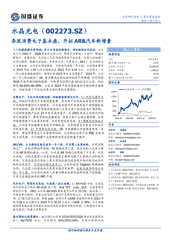 【国盛证券】【20250224】水晶光电-002273.SZ-夯筑消费电子基本盘,开拓AR&汽车新增量-41页