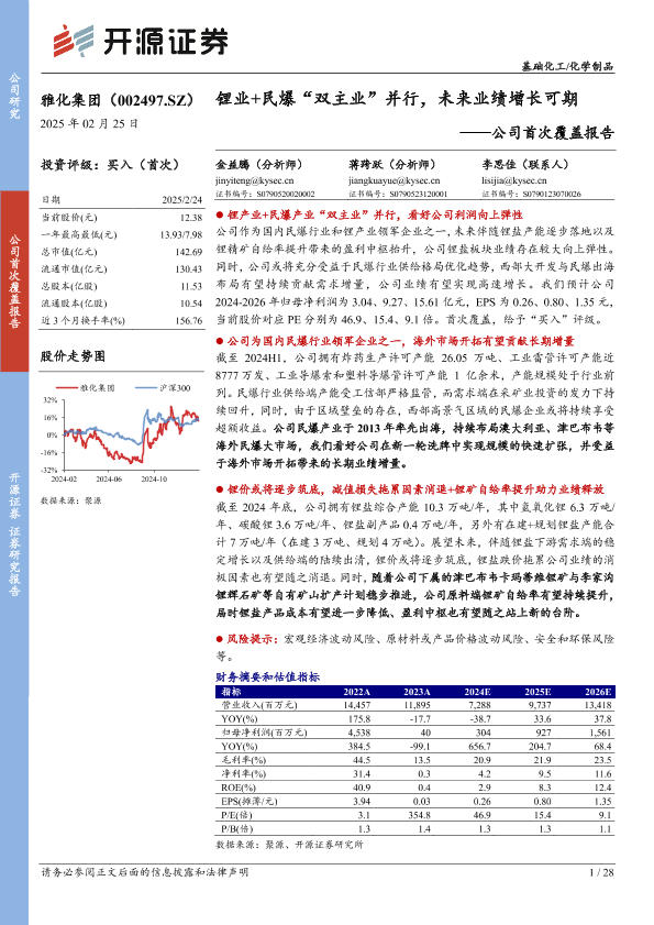 【开源证券】【20250225】雅化集团-公司首次覆盖报告:锂业+民爆“双主业”并行,未来业绩增长可期-28页