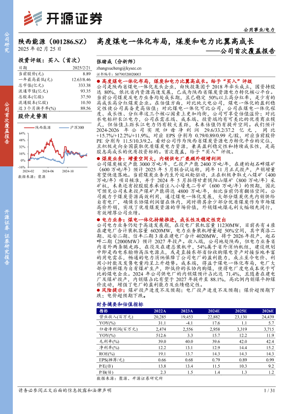【开源证券】【20250225】陕西能源-001286.SZ-公司首次覆盖报告:高度煤电一体化布局,煤炭和电力比翼高成长-31页