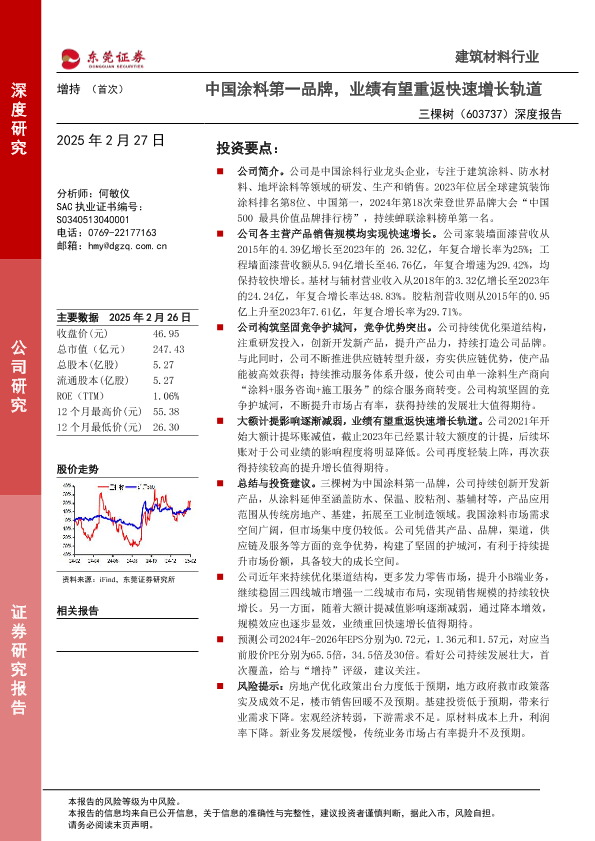 【东莞证券】【20250227】20250227-东莞证券-三棵树-603737.SH-深度报告:中国涂料第一品牌,业绩有望重返快速增长轨道-15页