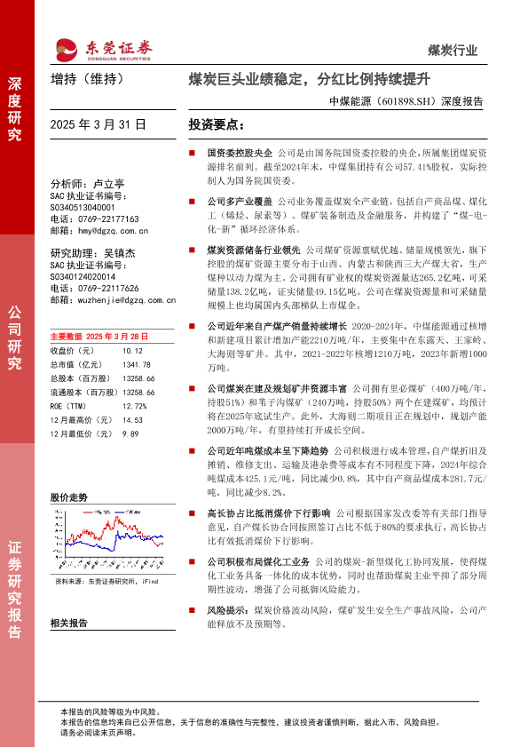 【东莞证券】【20250331】20250331-东莞证券-中煤能源-601898.SH-深度报告:煤炭巨头业绩稳定,分红比例持续提升-20页