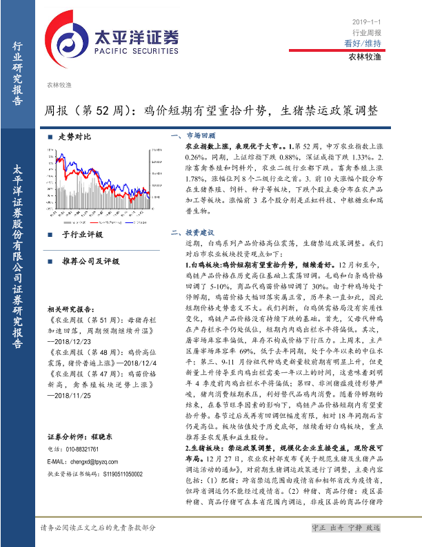 【太平洋证券】【20190101】农林牧渔行业周报(第52周):鸡价短期有望重拾升势,生猪禁运政策调整-18页