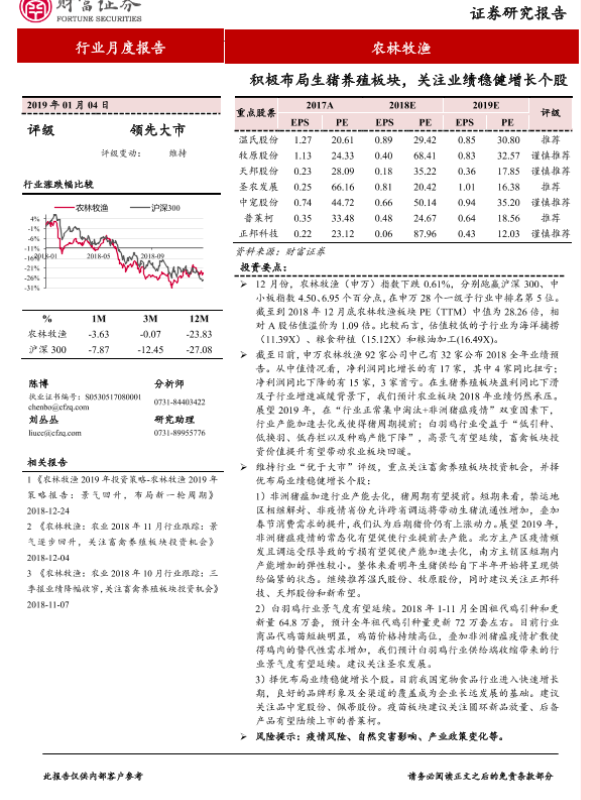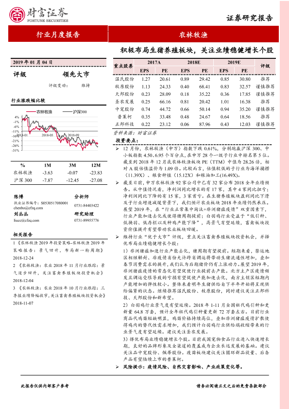 【财信证券】【20190104】农林牧渔行业月度报告:积极布局生猪养殖板块,关注业绩稳健增长个股-16页
