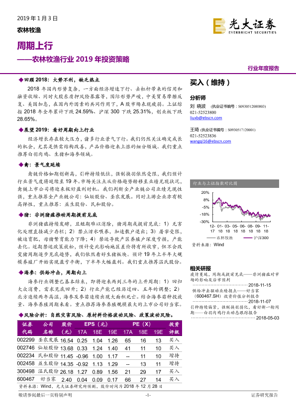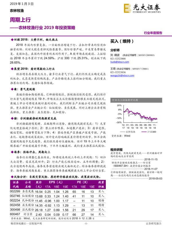 【光大证券】【20190103】农林牧渔行业2019年投资策略:周期上行-43页