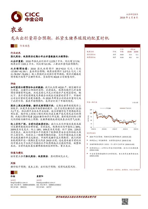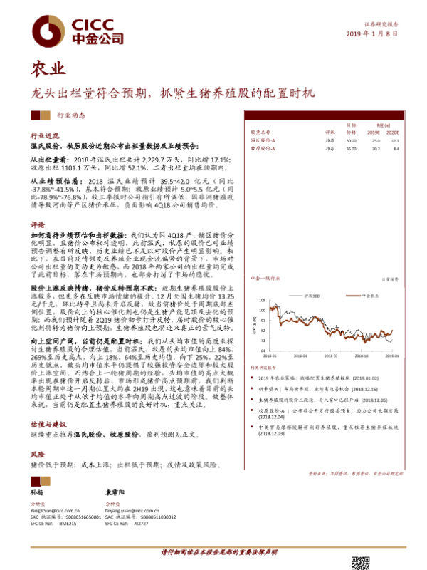 【中金公司】【20190108】农业:龙头出栏量符合预期,抓紧生猪养殖股的配置时机-6页