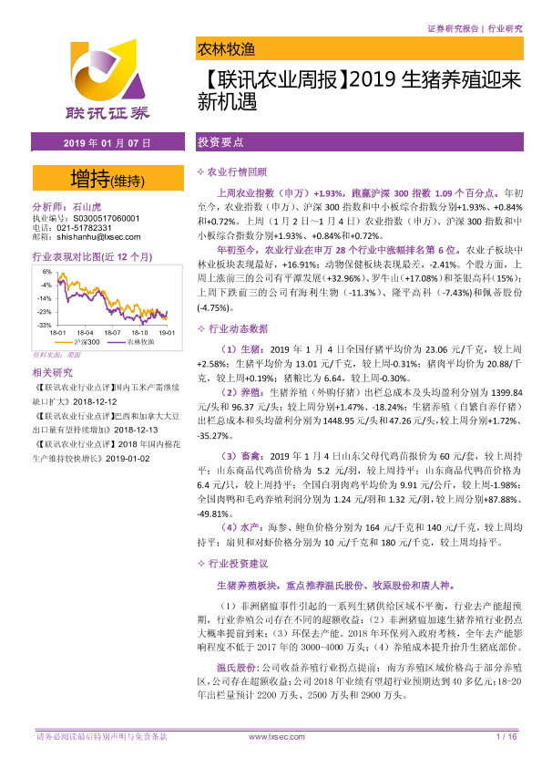 【粤开证券】【20190107】2019生猪养殖迎来新机遇-16页