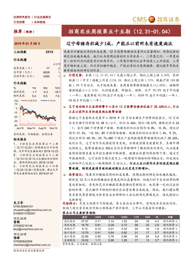 【海通证券】【20190106】招商农业周报第五十五期:辽宁母猪存栏减少3成,产能正以前所未有速度淘汰-23页
