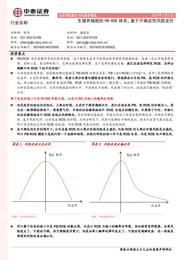 【中泰证券】【20190106】农林牧渔行业报告简版:生猪养殖股的PB-ROE体系,基于不确定性风险定价-10页