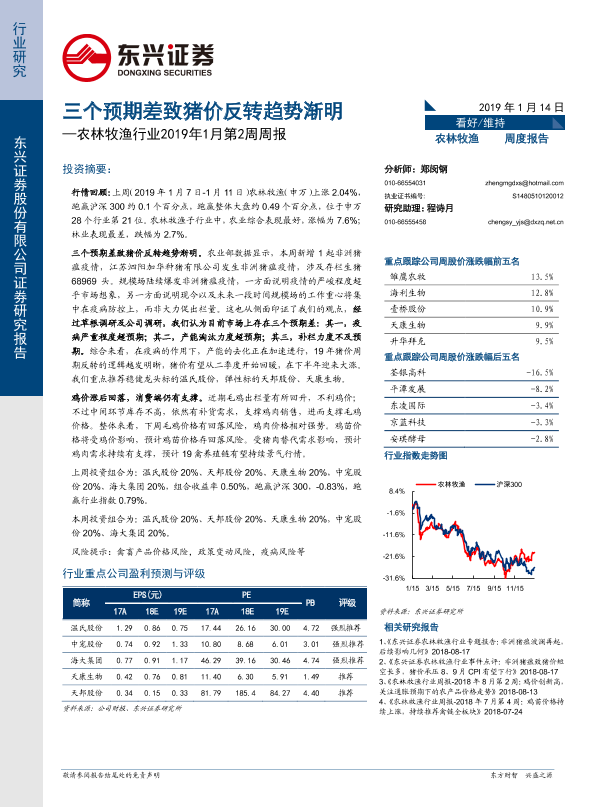 【东兴证券】【20190114】农林牧渔行业2019年1月第2周周报:三个预期差致猪价反转趋势渐明-25页