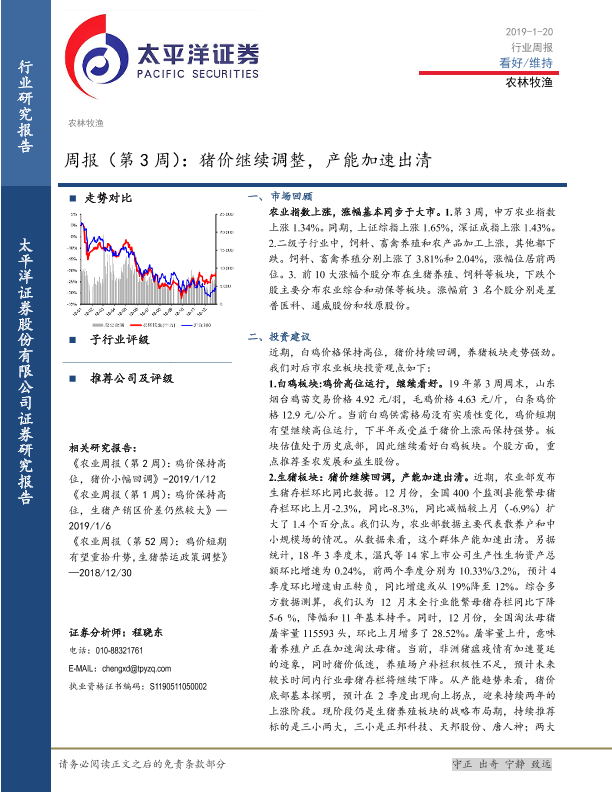 【太平洋证券】【20190120】20190120-太平洋-农林牧渔行业周报(第3周):猪价继续调整,产能加速出清-17页