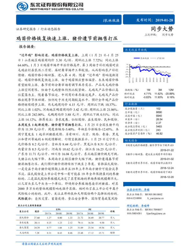 【东北证券】【20190128】农林牧渔行业动态报告:鸡苗价格恢复快速上涨,猪价遭节前抛售打压-10页